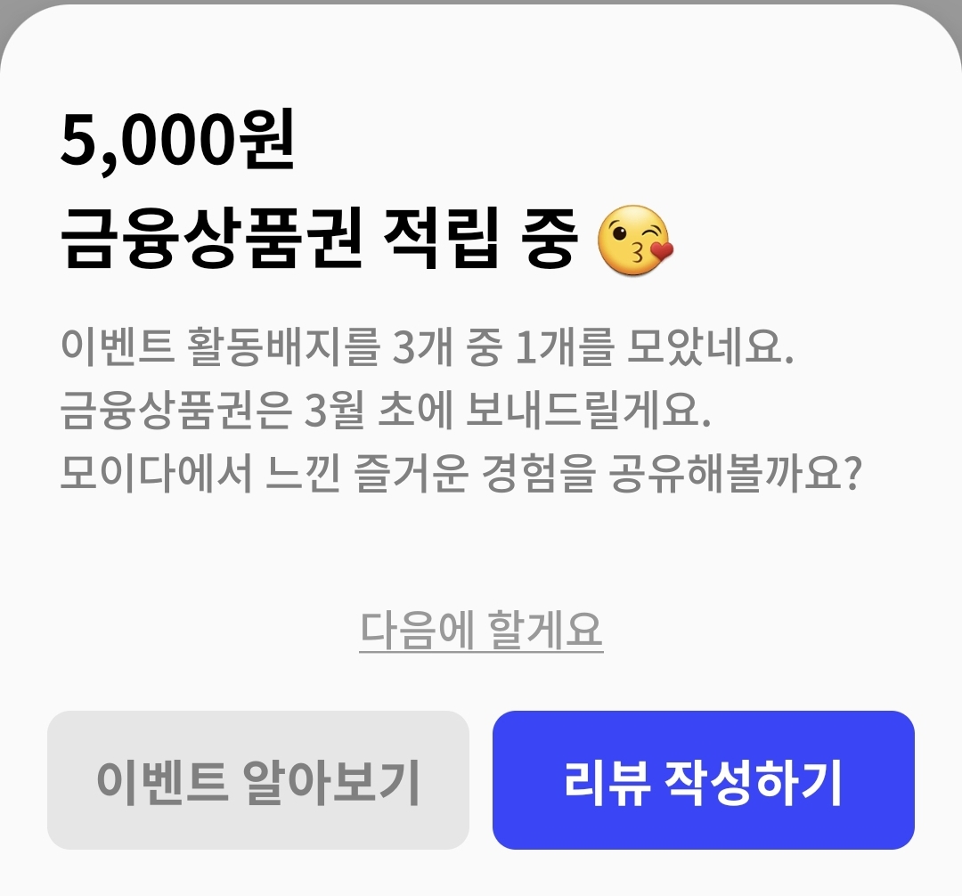 5,000원의 금융상품권 지급이 되며,