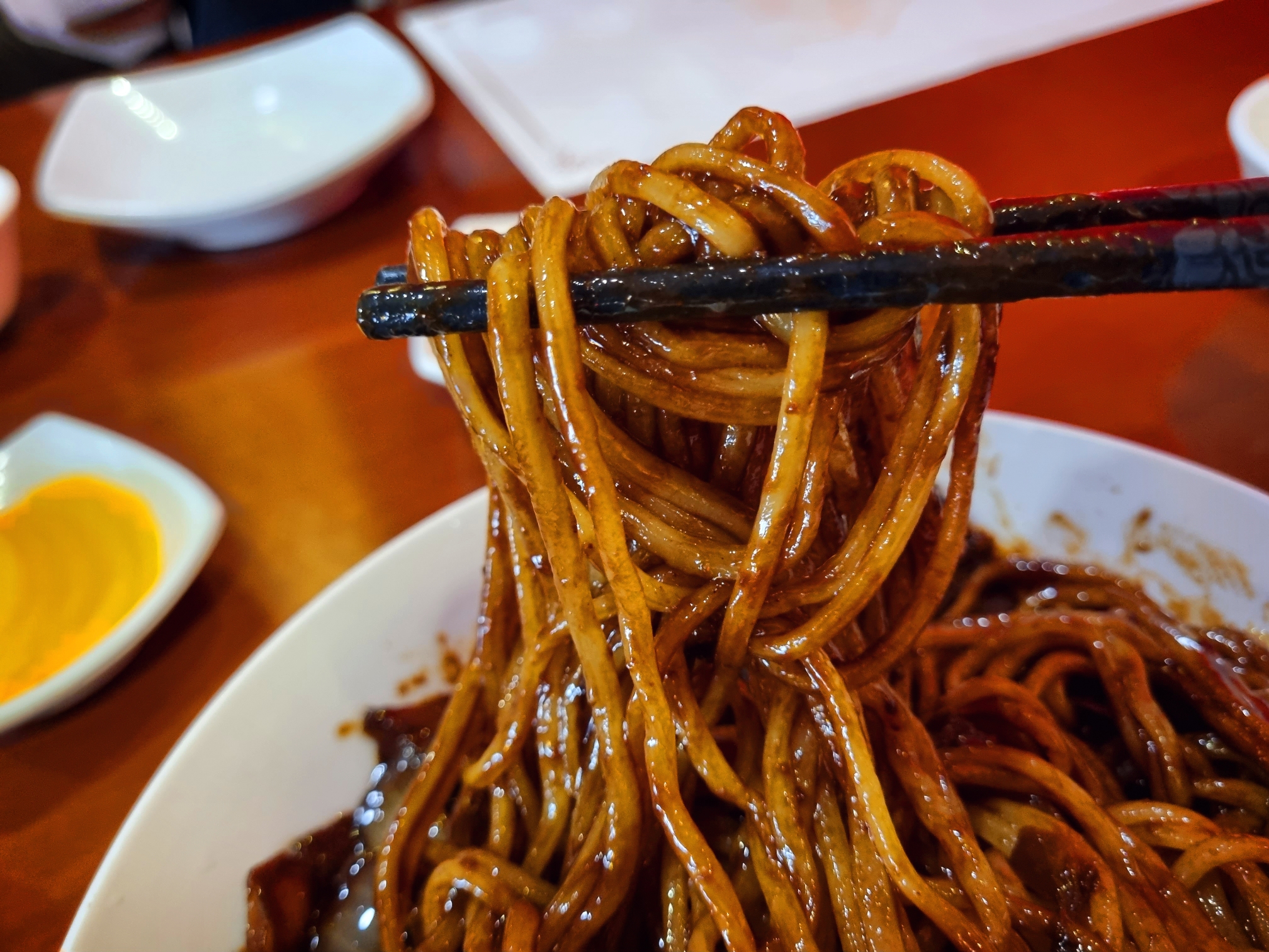 아이가 주문한 1 티어 짜장면!! 한 입 먹어봤는데 의외로 정말 맛있더라구요 ~ 제가 주문한 백짬뽕보다 맛있었습니다 ㅋ