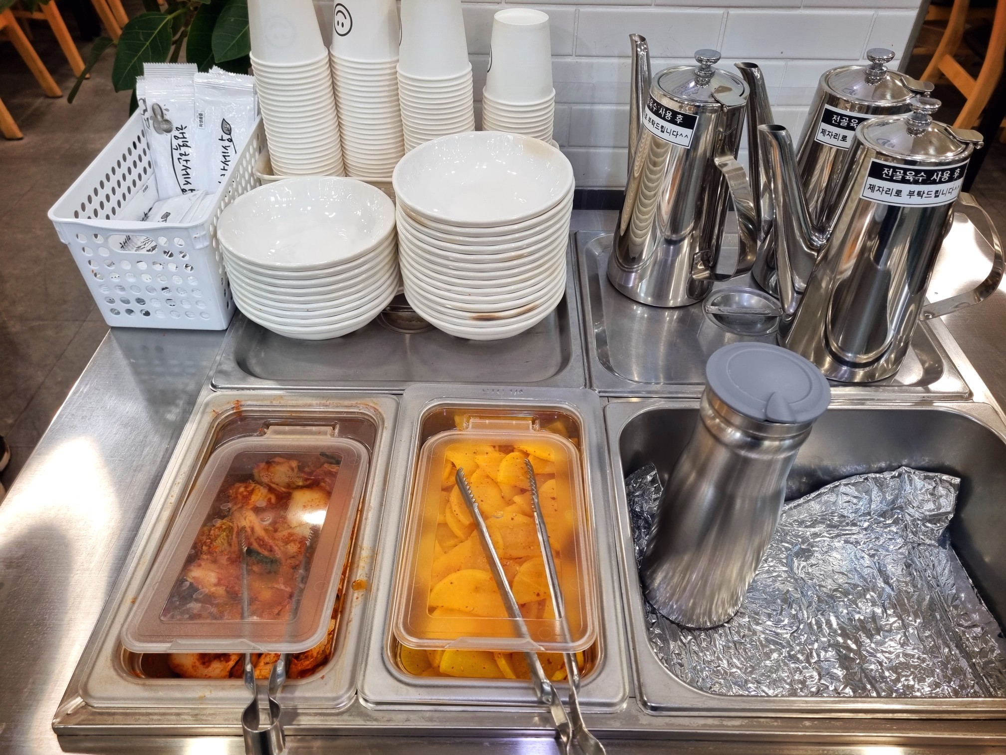 추가 반찬과 육수는 셀프바에서